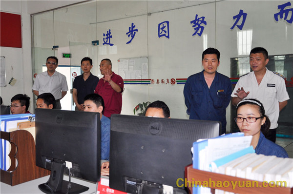 凡殿才向王涇波一行匯報了昊源公司目前的生產經營情況、改擴建項目進度以及未來發展規劃等。質檢局特設科技術人員對公司特種設備臺賬、注冊登記、檢驗檢測記錄、日常檢查記錄、安全附件臺帳等資料進行抽樣檢查。