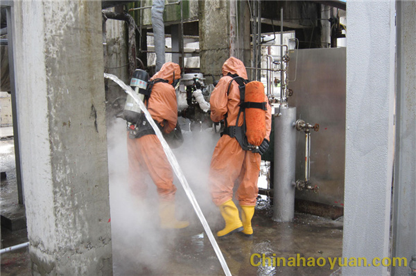2014年7月14日,聯合車間舉行4#合成工段氨泄漏反事故演練。