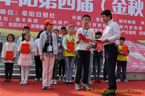 10月18上午,“昊源杯”小記者寫作、攝影大賽評選頒獎活動,在市體育中心舉行。阜陽日報社黨委書記、社長張洪、昊源公司工會副主席戚偉等出席頒獎儀式,并為獲獎小記者頒獎。