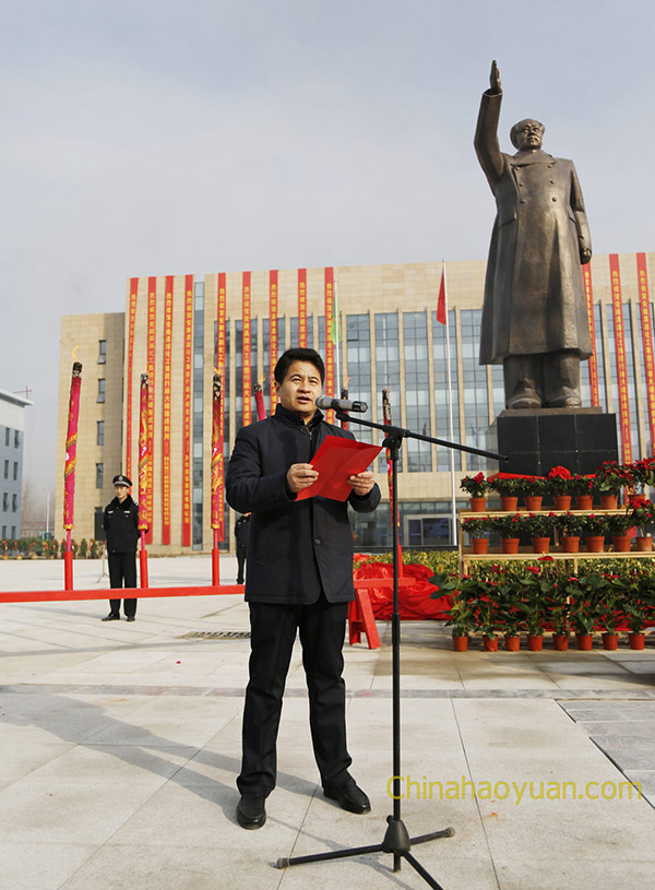 12月26日上午,昊源集團有限公司阜陽煤基新材料產業園區項目行政大樓落成暨毛主席銅像揭幕儀式隆重舉行。昊源公司黨委書記、董事長凡殿才等公司高管出席本次儀式,副總經理高明林主持儀式。