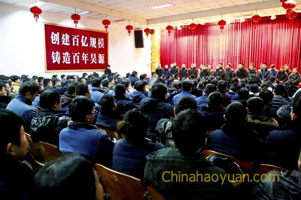 大年初一,黨委書記、董事長凡殿才帶領公司中高層管理人員,到生產各崗位慰問春節期間仍堅守工作崗位的一線干部員工。每到一處,凡殿才董事長與員工親切握手問候,仔細詢問他們的工作和生活情況,鼓勵他們抓住公司發展機遇,努力工作,為昊源的美好明天而奮斗。