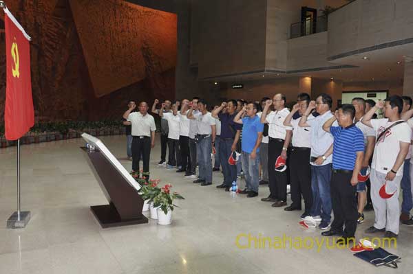 隨后,我們昊源的黨員、干部、積極份子在渡江戰役紀念館活動大廳,面對鮮紅的黨旗,莊嚴宣誓,并重溫了入黨誓詞。