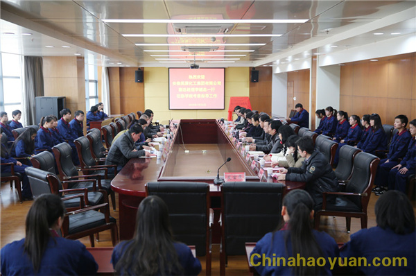 1月20日下午,昊源集團與安徽職業技術學院校企合作簽約儀式在安徽職業技術學院行政樓10樓會議室隆重舉行。公司黨委黨委副書記李繼忠、企管處處長張明、企管處副處長李紅影、安徽職業技術學院院長亓四華、副院長李雪、史峰,化工系黨總支書記陳國玖、系主任方向紅等出席簽約儀式。安徽職業技術學院昊源班學生代表數十人身著昊源集團工作服參加會議。