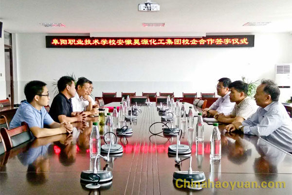 9月7日上午,安徽昊源化工集團(tuán)有限公司與阜陽(yáng)職業(yè)技術(shù)學(xué)校舉行校企合作簽字儀式。公司總經(jīng)理助理潘家成、職業(yè)技術(shù)學(xué)校校長(zhǎng)張平、副校長(zhǎng)李偉出席簽字儀式。