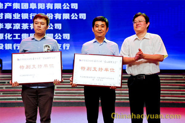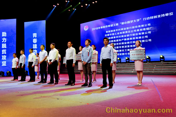 會上,共青團阜陽市委員會、阜陽市希望工程辦公室授于安徽昊源化工集團有限公司阜陽市2018年希望工程“愛心圓夢大學”特別支持單位,戚偉代表昊源集團領取獎牌。