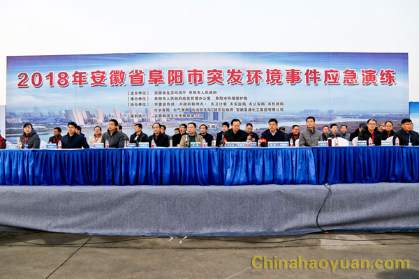 本次演練由安徽省生態(tài)環(huán)境廳、阜陽市人民政府主辦,市政府應(yīng)急辦、市環(huán)境保護局承辦,市委宣傳部、市政府新聞辦、市衛(wèi)計委、市安監(jiān)局、市公安局、市民政局、市水務(wù)局、市氣象局、阜陽消防支隊、潁東區(qū)政府、昊源化工等協(xié)辦。以上單位相關(guān)領(lǐng)導(dǎo)、安徽省其它縣市環(huán)境負責(zé)人、昊源化工部分員工現(xiàn)場觀摩演練。