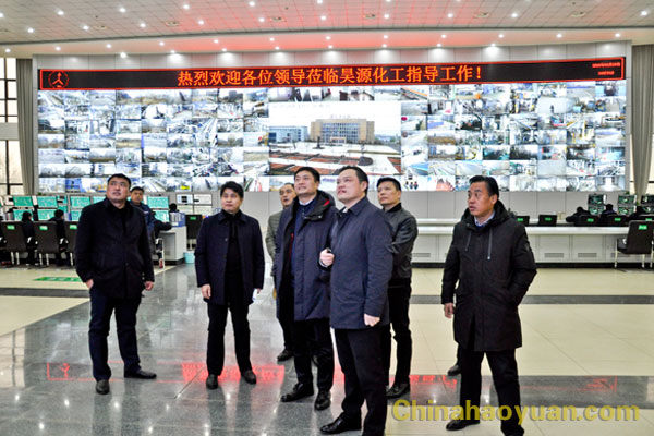 莊小雄一行在張銀軍、凡殿才、高明林等陪同下,深入昊源公司園區生產一線,實地察看園區生產裝置運行情況。在園區生產主控室,凡殿才向莊小雄一行介紹了昊源公司園區項目發展規劃、產品結構、園區二期項目建設進度、生產裝置生產能力及運行情況。