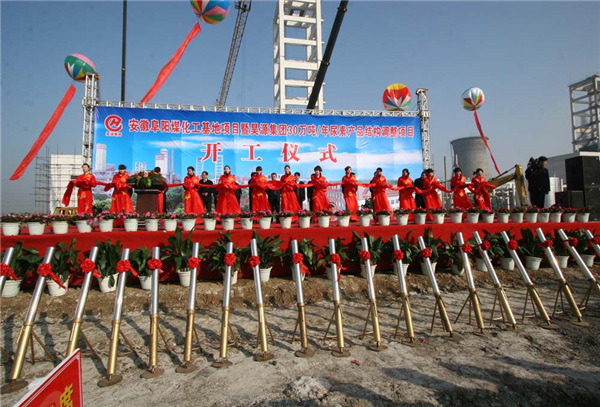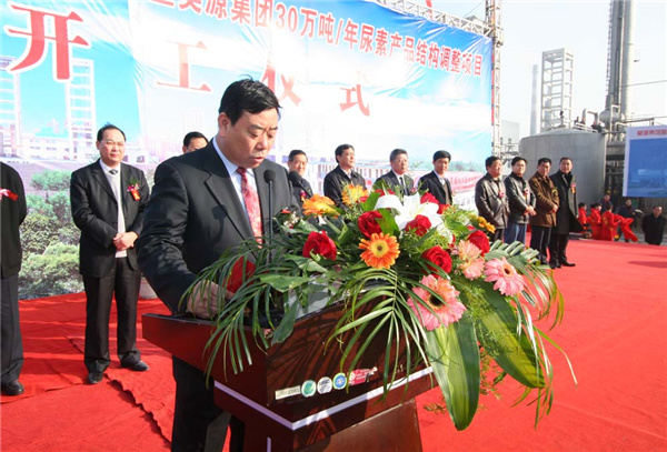 潁淮大地春來早,加快發展奏強音。2月10日,安徽昊源化工集團有限公司年產30萬噸尿素產品結構調整項目開工。省政府參事李朝東,阜陽市委書記、市人大常委會主任宋衛平,市委副書記、市長孫云飛,市委秘書長亓龍,市人大常委會副主任儲金水,副市長劉輝,市政協副主席李子鵬,市政府副秘書長趙丹,晉煤集團煤化工產業發展局副局長李占良,省化肥公司經理夏英彪,昊源集團黨委書記、董事長饒金鐸,總經理劉博,副總經理李繼忠、高玉磊、凡殿才、楊捷、田懷廣等參加了項目開工儀式。