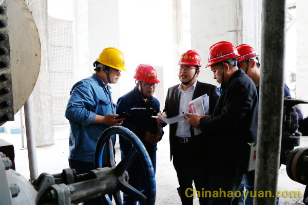 2019年5月8日,市、區市場監督管理局相關部門組成的市場監督檢查組,來昊源公司對液體無水氨、工業用甲醇、工業用液體二氧化碳、硫酸四種危險化學品的生產現場及特種設備管理進行實地監督檢查。公司副總經理張海生,質量科、動力處等相關部門負責人陪同。