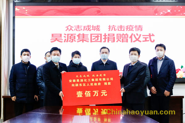 2月1日,昊源集團黨委書記、董事長凡殿才代表安徽昊源化工集團有限公司向潁東區人民政府捐款100萬元,用于新型冠狀病毒感染的肺炎疫情防治。潁東區政府區長張銀軍、副區長顧中偉,昊源集團副總經理高玉磊,工會副主席戚偉、財務處長侯繼文出席捐贈活動。