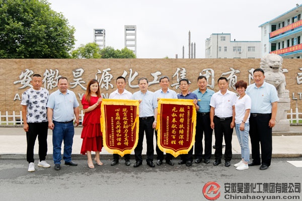 7月5日,界首市新馬集鎮(zhèn)黨委委員、老王寨村包點干部劉志強,老王寨村黨總支書記、主任王亞遜一行為昊源公司送來“脫貧攻堅助力見真情 心系群眾共譜和諧曲”、“駐村幫扶結(jié)深情 無私奉獻為百姓”兩面錦旗,對昊源公司在精準扶貧工作中為老王寨村村民辦實事、做好事、解難事表達誠摯謝意。公司黨委副書記、副總經(jīng)理楊捷,工會副主席楊波,公司原駐老王寨村扶貧干部毛永賢參加了授旗儀式,并就扶貧工作進行了座談交流。