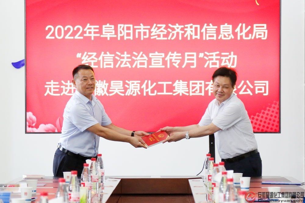 在公司會議室,靳健代表市經(jīng)信局向昊源公司發(fā)放《中華人民共和國民法典》、《中華人民共和國反有組織犯罪法》、《信訪工作條例》和《安徽省中小企業(yè)促進條例》文本,并深入了解昊源公司依法治企相關(guān)情況。
