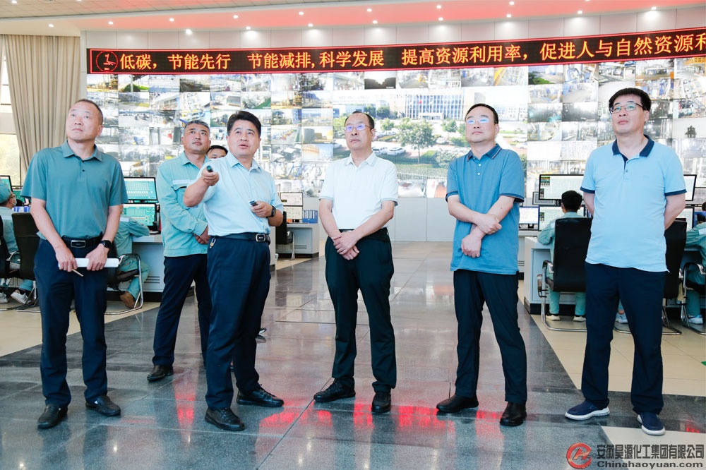 王鎖奎一行深入昊源公司老廠區(qū)、園區(qū)項目生產(chǎn)建設(shè)現(xiàn)場、中心控制室等地,實地查看生產(chǎn)運行、在建項目建設(shè)等情況。在中心控制室,凡殿才向王鎖奎一行匯報了潁東化工園區(qū)及昊源公司總體發(fā)展規(guī)劃、公共資源配置等情況。