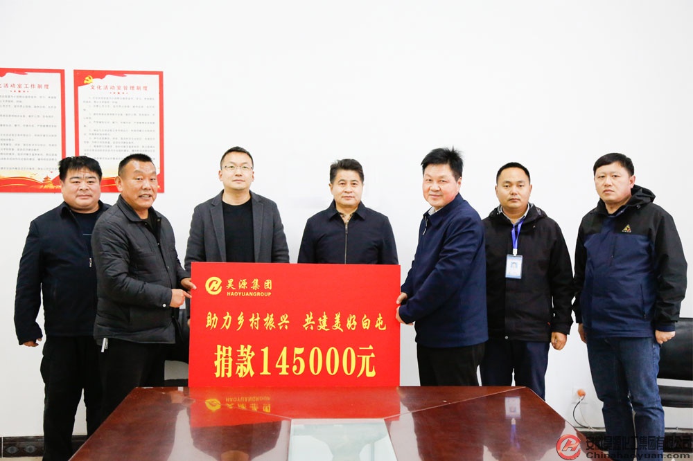 11月14日,昊源公司黨委書記、董事長凡殿才,黨委副書記、副總經理高玉磊代表昊源公司向潁東區口孜鎮白屯民族居委會捐款145000元助力鄉村振興工作。