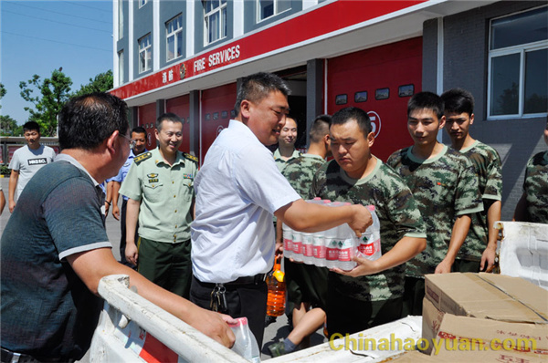 軍愛民,民擁軍,軍民魚水一家人。7月30日,在“八一”建軍節前夕,昊源公司黨委書記、董事長鄭高潮,副總經理高明林一行到阜陽市消防支隊,慰問消防官兵,向消防官兵送去節日的祝福,與廣大官兵共度“八一”佳節,表達對人民子弟兵的深情厚誼。