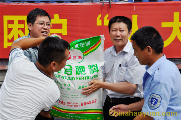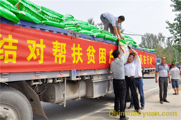 2015年8月12日,載著昊源人深情厚意的一車化肥,從昊源公司拉往馬寨鄉(xiāng)皮樓村,由昊源公司總經(jīng)理助理潘家成、工會(huì)副主席戚偉代表昊源公司親手交到潁州區(qū)皮樓村困難老鄉(xiāng)手里。