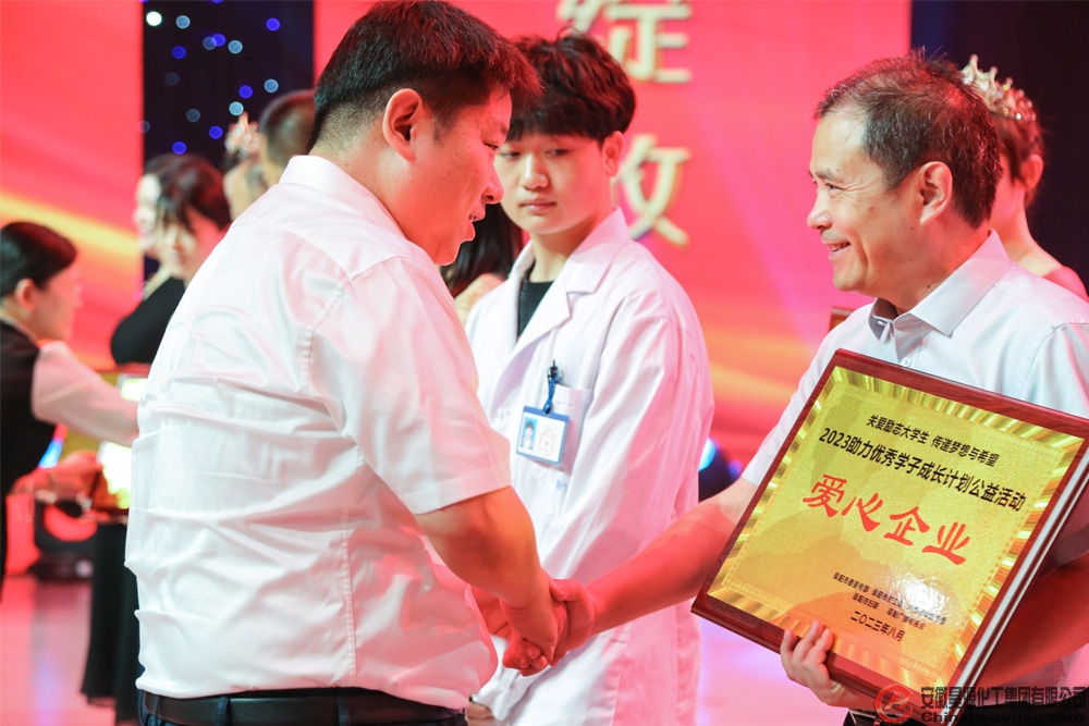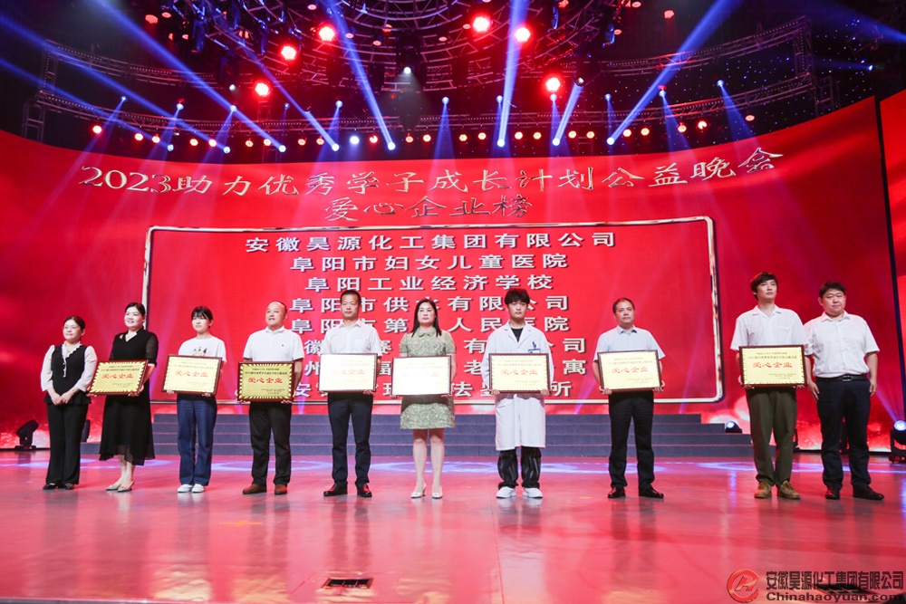 8月13日,由中共阜陽市委宣傳部、市關工委、市民政局、共青團阜陽市委、市婦聯、阜陽廣播電視臺共同主辦的“青春逢盛世 奮斗正當時,2023助力優秀學子成長計劃公益晚會”,在阜陽廣播電視臺演播大廳舉行。公司黨委副書記、副總經理楊捷代表昊源集團受邀出席晚會,并為優秀學子頒發勵志助學金。會上,安徽昊源化工集團有限公司被授予“愛心企業”光榮稱號。