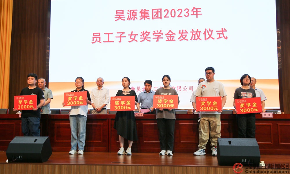 8月17日,昊源公司2023年員工子女獎學金發放儀式在研發中心一樓報告廳隆重舉行。公司黨委書記、董事長凡殿才、副總經理田懷廣、張海生,友好合作單位阜陽寶龍溫德姆至尊豪廷大酒店總經理徐道建出席會議。