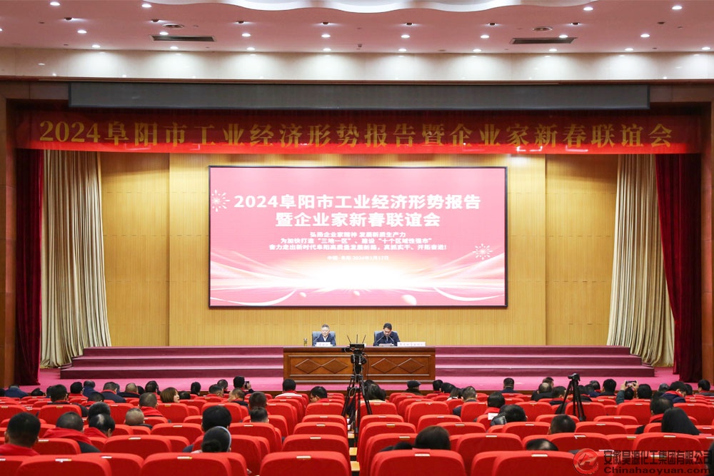 1月17日,2024阜陽市工業經濟形勢報告暨企業家新春聯誼會在市委黨校舉行,阜陽市人民政府副市長虞建斌與會作工業經濟形勢主旨報告,昊源公司黨委書記、董事長凡殿才出席會議。