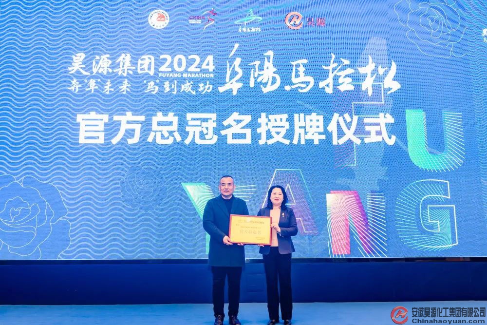 奔“阜”未來,“馬”到成功。2月29日,由安徽昊源化工集團有限公司總冠名的“昊源集團”2024阜陽馬拉松新聞發布會在合肥召開,昊源集團副總經理、工會主席張海生出席會議,并進行官方總冠名授牌。