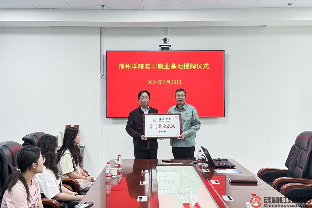 5月30日,昊源公司與宿州學院舉行聯合共建“實習就業基地”授牌儀式,宿州學院化學化工學院書記史洪偉、昊源公司總經理助理潘家成、企管處處長張明出席儀式。