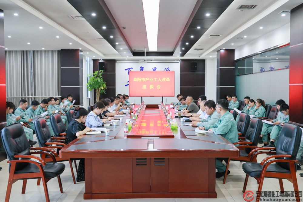 6月16日,阜陽市產(chǎn)業(yè)工人隊(duì)伍建設(shè)改革座談會(huì)在昊源園區(qū)召開。阜陽市總工會(huì)黨組成員、副主席王玲玲出席并主持會(huì)議,潁東區(qū)總工會(huì)黨組書記、副主席劉濤,昊源公司副總經(jīng)理、工會(huì)主席張海生,工會(huì)副主席戚偉、企管處副處長趙文華出席會(huì)議。
