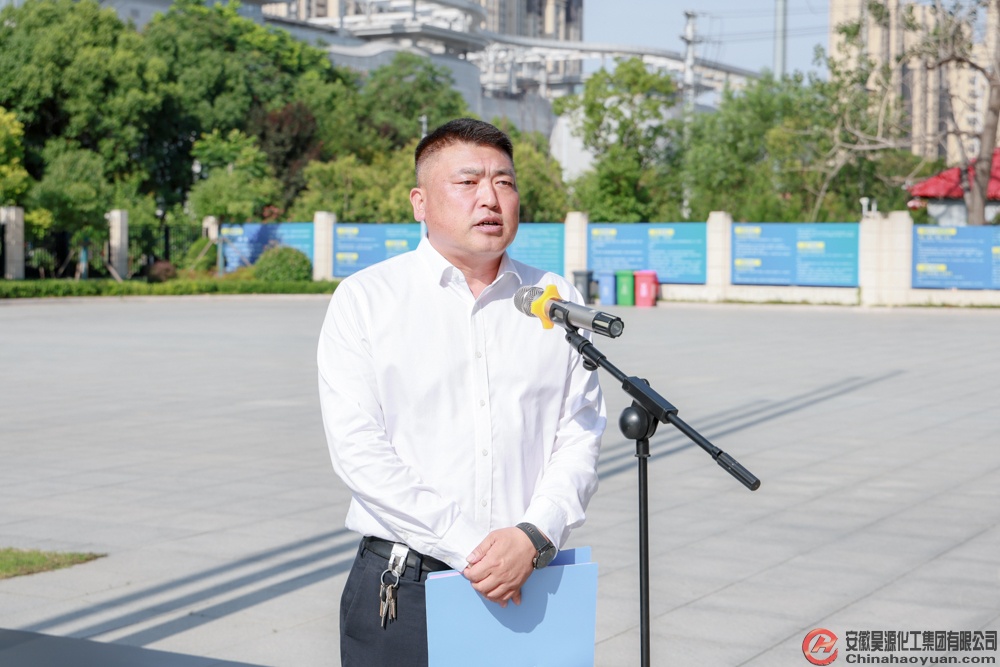 6月18日,昊源公司舉行升旗儀式,常務副總經理高明林主持升旗儀式。