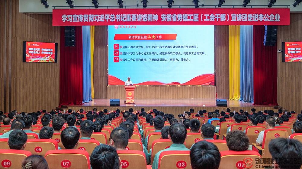 本次宣講活動由安徽省總工會主辦、阜陽市總工會承辦。市各縣(市)區(qū)、各經(jīng)濟(jì)開發(fā)區(qū)總工會主要負(fù)責(zé)同志,圓通、餓了么等新就業(yè)形態(tài)勞動者及昊源公司員工代表等400余人現(xiàn)場聆聽宣講。活動通過省總工會的微信視頻號、抖音號進(jìn)行線上直播。
