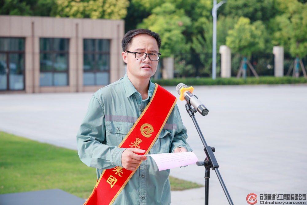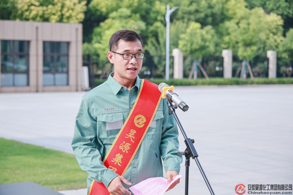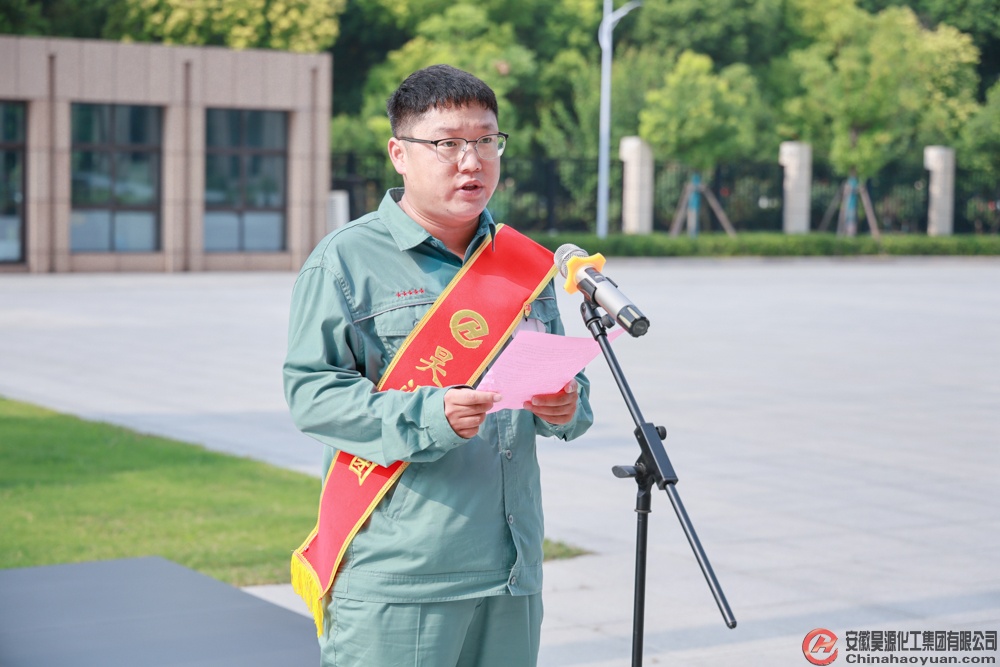 7月18日,昊源公司舉行升旗儀式,副總經理賈健主持升旗儀式。