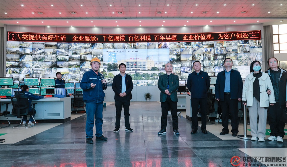 在園區生產控制中心,李超群匯報昊源公司生產經營現狀、項目建設進展及發展規劃。昊源公司作為一家集化肥、基礎化工、精細化工、高端化學品及化工新材料研發、生產于一體的綜合性化工企業,已完成一至三期項目建設并實現達產達標,四期項目作為延鏈、補鏈、強鏈的重點工程,將實現從傳統煤化工向精細化工、化工新材料及高端化學品的產業轉型升級,全面邁入高端化、多元化、低碳化發展新階段。
