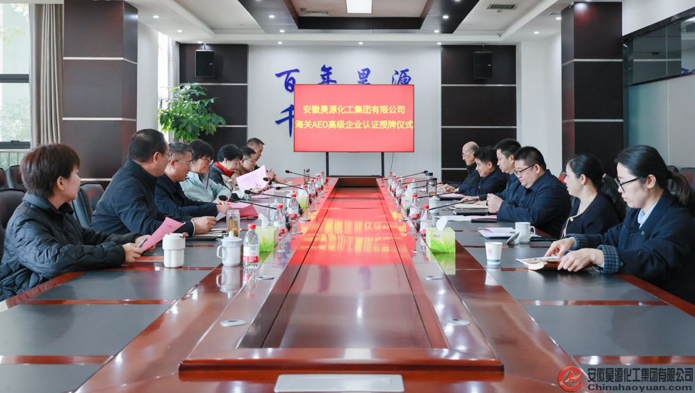 11月12日上午,安徽昊源化工集團有限公司海關AEO高級企業認證授牌儀式在園區南區綜合樓一號會議室舉行。合肥海關黨委委員、副關長李燕向昊源公司黨委書記、董事長凡殿才,頒發海關AEO高級企業認證證書。阜陽市副市長黎成,阜陽海關黨委書記、關長宋譽,阜陽海關黨委委員、副關長杜超,潁東區區長劉健、潁東區商務局局長張瑜,昊源公司副總經理賈健出席儀式。