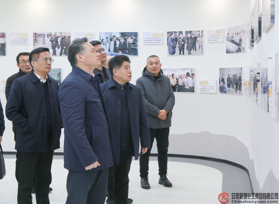 張銀軍一行首先來到昊源研發中心展廳,通過歷史影像資料、圖文展板及實物產品陳列,系統了解企業從傳統煤化工向高端化、低碳化轉型發展歷程。