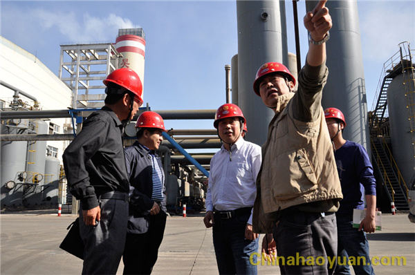2016年5月3日下午,市安全生產監督管理局局長李智、副局長李賀、?;瓶崎L王煌輝及安全生產專家蒞臨昊源公司指導安全生產工作。公司黨委書記、董事長凡殿才,總經理助理吳珍漢、安全副總工劉升陪同。