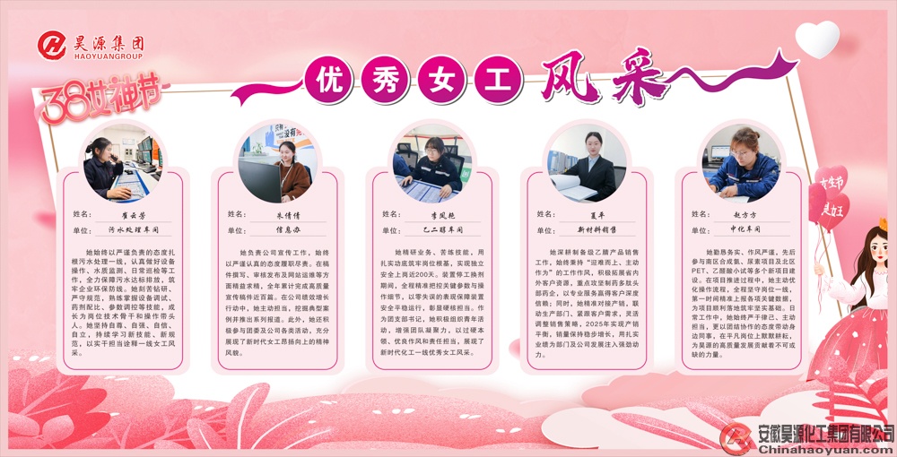 陽春三月,芳華綻彩。為熱烈慶祝國際“三八”婦女節(jié),進(jìn)一步弘揚(yáng)先進(jìn)精神、樹立典型標(biāo)桿,激發(fā)女員工干事創(chuàng)業(yè)熱情,昊源公司特從基層一線評選出十名“優(yōu)秀女工”并予以表彰。