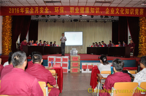 6月25日下午,昊源公司 “2016年度安全、職業健康、環保、企業文化綜合知識競賽”決賽在大禮堂舉行。公司安委會辦公室主任戚偉、安全副總工劉升、公司辦主任徐中明、生產辦主任李超群、動力處副處長章好田出席比賽擔任評委。