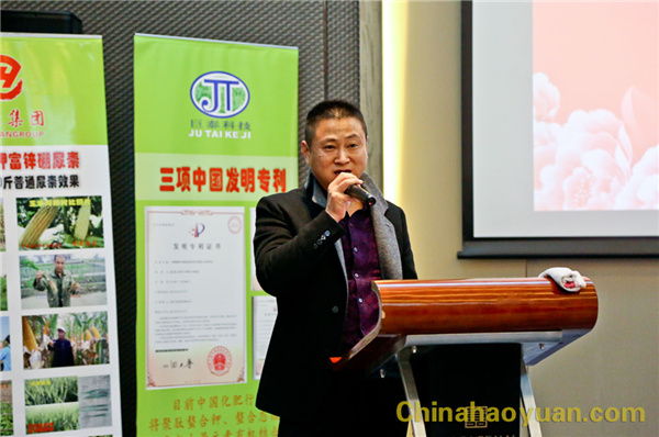 北京巨泰科技有限公司技術研發部經理孔令亮與會介紹了聚肽螯合鉀富鋅硼尿素的使用效果與作用機理。