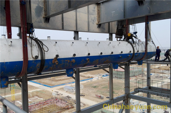 在昊源公司口孜園區項目鍋爐組的不斷努力下,經過四個多月的緊張施工,鍋爐主體框架已基本安裝到位。2017年3月11日,在鍋爐項目組的監管下,施工單位密切配合,按照項目進度如期對汽包進行吊裝。汽包于上午9時許開始吊裝,經過數小時忙碌,于下午15時許一次吊裝成功。汽包就位后,水冷壁、旋風分離器等相關設備、部件的安裝隨后進行,整個安裝工作面全面展開。鍋爐工段是口孜園區項目最早開車運行的工段,鍋爐項目組全體成員克服困難,確保項目如期完工。