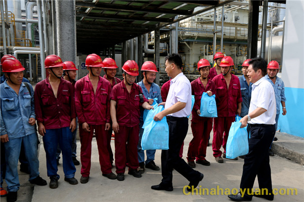 在公司航天爐系統,吳燕一行把清涼大禮包一一發放到生產一線員工手中,并代表阜陽市總工會向昊源公司高溫期間堅守崗位一線員工表示慰問,叮囑大家在保證安全生產的同時,注意做好個人防暑降溫、保重身體。公司副總經理、工會主席高玉磊代表昊源公司全體員工感謝阜陽市總工會對昊源公司的關心,昊源公司全體員工將繼續努力,為阜陽市經濟發展做出更大貢獻。