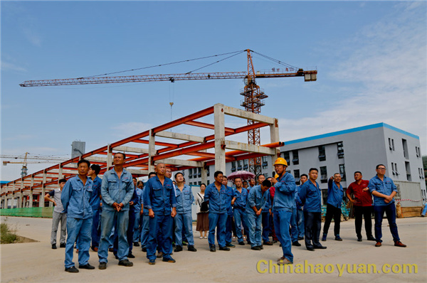 在園區(qū)項(xiàng)目建設(shè)現(xiàn)場,公司副總經(jīng)理高明林、總經(jīng)理助理張超分別介紹了園區(qū)項(xiàng)目規(guī)劃、一期項(xiàng)目建設(shè)內(nèi)容、當(dāng)前項(xiàng)目建設(shè)進(jìn)度等。目前,園區(qū)項(xiàng)目正在緊張施工之中。所有工段基本土建結(jié)束,已全面轉(zhuǎn)入設(shè)備安裝階段。大家一邊走、一邊看、一邊聽,眼前拔地而起的一排排、一座座雄偉建筑讓人震撼,親身體會(huì)到昊源的發(fā)展速度與強(qiáng)勁。同時(shí),從心里為園區(qū)項(xiàng)目建設(shè)者點(diǎn)贊,感謝他們?yōu)榱岁辉垂究焖侔l(fā)展而默默付出。