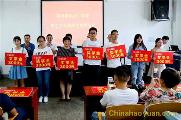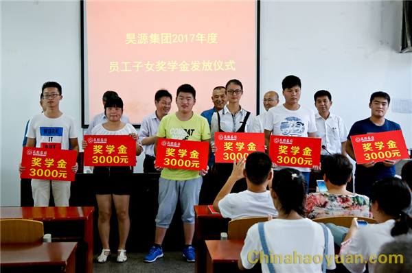 8月25日,“昊源集團(tuán)2017年度員工子女獎(jiǎng)學(xué)金發(fā)放儀式”在公司培訓(xùn)中心舉行。公司領(lǐng)導(dǎo)高玉磊、張海生、田懷廣、吳珍漢出席儀式,儀式由工會(huì)副主席戚偉主持。