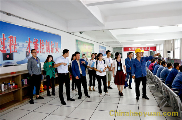 “安徽大學博士團”一行來到航天爐系統總控室及尿素裝置現場,吳珍漢向“安徽大學博士團”介紹了公司生產運行情況。
