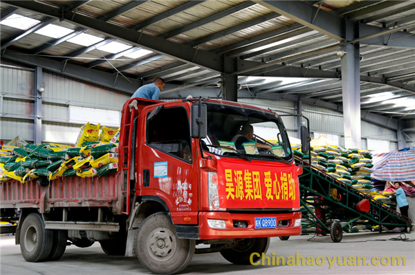 9月23日,昊源集團黨委副書記、副總經理高玉磊在界首昊源化工有限責任公司副董事長吳萬義、總經理王國濤的陪同下,到界首市新馬集鎮老王寨村,代表昊源集團將一車復合肥送到貧困村民手中,進行結對扶貧慰問。
