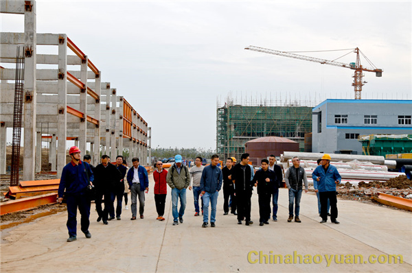 在昊源集團阜陽煤基新材料產業園區項目建設現場,凡殿才向華東理工大學EMBA十一班精英介紹了園區項目建設情況,一起參觀了園區項目施工工地。
