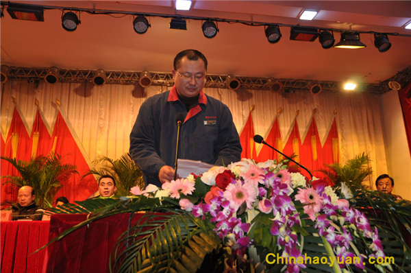 阜陽市經委副主任左會同、阜陽市化工協會會長李智、市總工會副主席陳華東等領導出席了總結表彰大會。大會由公司黨委副書記李繼忠主持,公司黨委書記、董事長饒金鐸作了題為“降成本、調結構、重創新、促轉型、為打造資源節約型環境友好型的百年昊源而奮斗”的報告。報告主要分為兩部分,一是對2009年的工作進行全面的總結。2009年是公司面對金融危機攻堅克難的一年,也是公司降成本、調結構、大干快上的一年。在這不平凡的一年中,祖國母親迎來了60華誕,讓我們看到了祖國60年來的繁榮昌盛和國防力量的日益強大。一年來,我國的經濟形勢也發生著深刻的變化。面對金融危機帶來的風險和機遇,公司黨委、董事會帶領全體員工,貫徹落實國家“保增長、保民生、促發展”的戰略部署,堅守“不減員、不降薪”的莊嚴承諾,同心同德,艱苦奮斗,通過深化管理、節能降耗和小改小革,企業保持了快速、健康、和諧發展的良好勢頭。二是對2010年工作進行了全面部署,明確提出了繼續貫徹執行“安全為天”的指導思想,以“12345”工作措施為主線,確保公司實現安全發展。就2010年的全國形勢而言,行業“洗牌”在即,市場競爭升級,我們要積極行動起來,在經營模式、業務模式、營銷推廣、成本管理上推陳出新,開創我們昊源的又一個“春天”。
