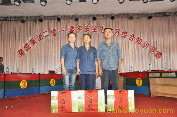 經過激烈角逐,儀表車間代表隊獲得此次比賽的一等獎,尿素車間代表隊、電氣車間代表隊分別獲得二等獎,紹興代表隊、界首代表隊、壓縮車間代表隊、鍋爐車間代表隊、造氣車間代表隊分別獲得三等獎。為充分調動現場觀眾的積極性,進一步提高全員的安全意識,比賽過程中設置了豐富的觀眾答題,并為搶答者提供實用的紀念品,從而提高了觀眾的參與熱情,達到全面普及安全法律、法規和安全知識,形成人人參與安全,人人講安全,人人想安全的安全文化氛圍,把比賽活動推向高潮。