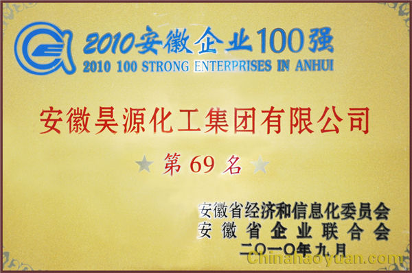 熱烈祝賀昊源集團(tuán)榮獲2010安徽企業(yè)100強(qiáng)第69名。