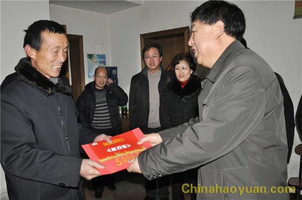 賈國華書記為昊源公司送上慰問金 賈國華書記慰問昊源公司全國勞模劉開連