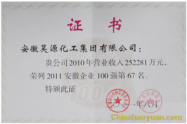 熱烈祝賀我公司榮列2011年安徽企業100強第67名
