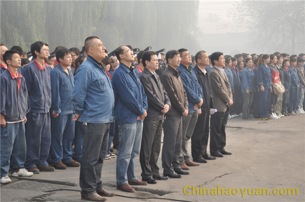 隨著雄壯的國歌聲響起,在經警隊旗手的護送下,五星紅旗冉冉升起。公司黨委副書記李繼忠作軍訓總動員講話。他說,軍訓月活動是昊源集團企業文化建設的重要組成部分,也是提高員工隊伍素質,培養全員協調一致,共同向上和展現企業員工精神風貌的重要體現。同時,軍訓也是一種學習,也是一種磨練和考驗。希望全體干部員工充分準備、以飽滿的熱情、頑強的毅力和旺盛的斗志參加軍訓,同時,他還對參加軍訓的員工提出具體要求,希望參加軍訓的員工都能以優異成績完成本次軍訓任務。