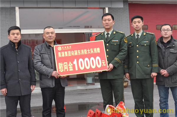 2月2日,公司總經理助理張海生一行來到潁東消防大隊慰問消防官兵,為他們送去了慰問品和慰問金。 張總首先代表昊源集團為消防官兵們送去了新年的問候和祝福,對官兵們長期以來給與昊源的大力支持和幫助表示感謝。消防官兵們紛紛表示,要立足本職、開拓進取,努力為地方經濟發展的保駕護航,爭取做出更大貢獻。
